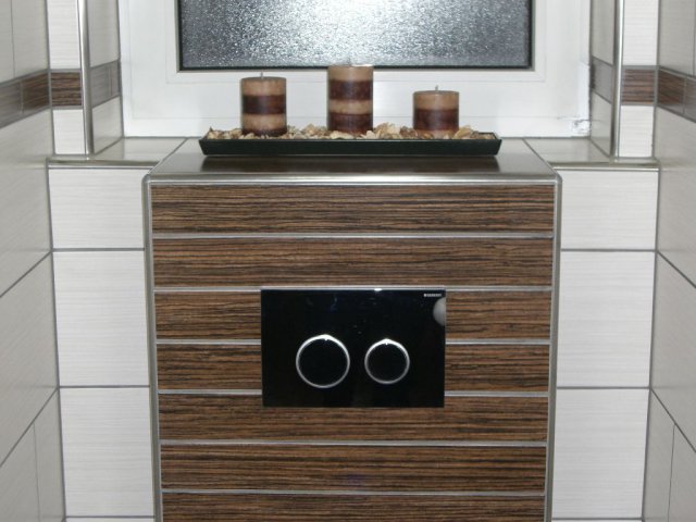 Das bestehende WC wurde umgebaut und im Design des Badezimmers neu errichtet.