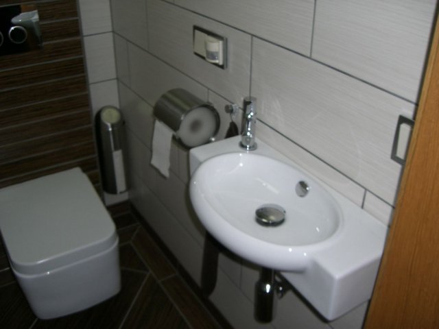 Das bestehende WC wurde umgebaut und im Design des Badezimmers neu errichtet.